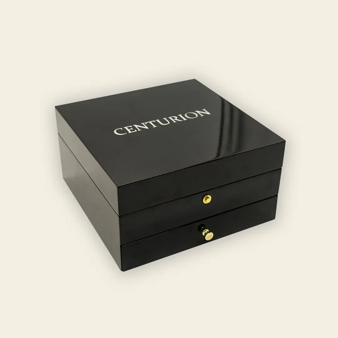 A prémium minőségű ikra különleges bánásmódot igényel. Kevesen tudják, hogy a kiegészítők anyaga is befolyásolhatja az ízélményt – például a fém megváltoztathatja a kaviár érzékeny aromáját. Ezért a Centurion dobozban gyöngyház kanalak találhatók, amelyek lehetővé teszik, hogy az íz és az állag érintetlenül, tisztán érvényesüljön.
